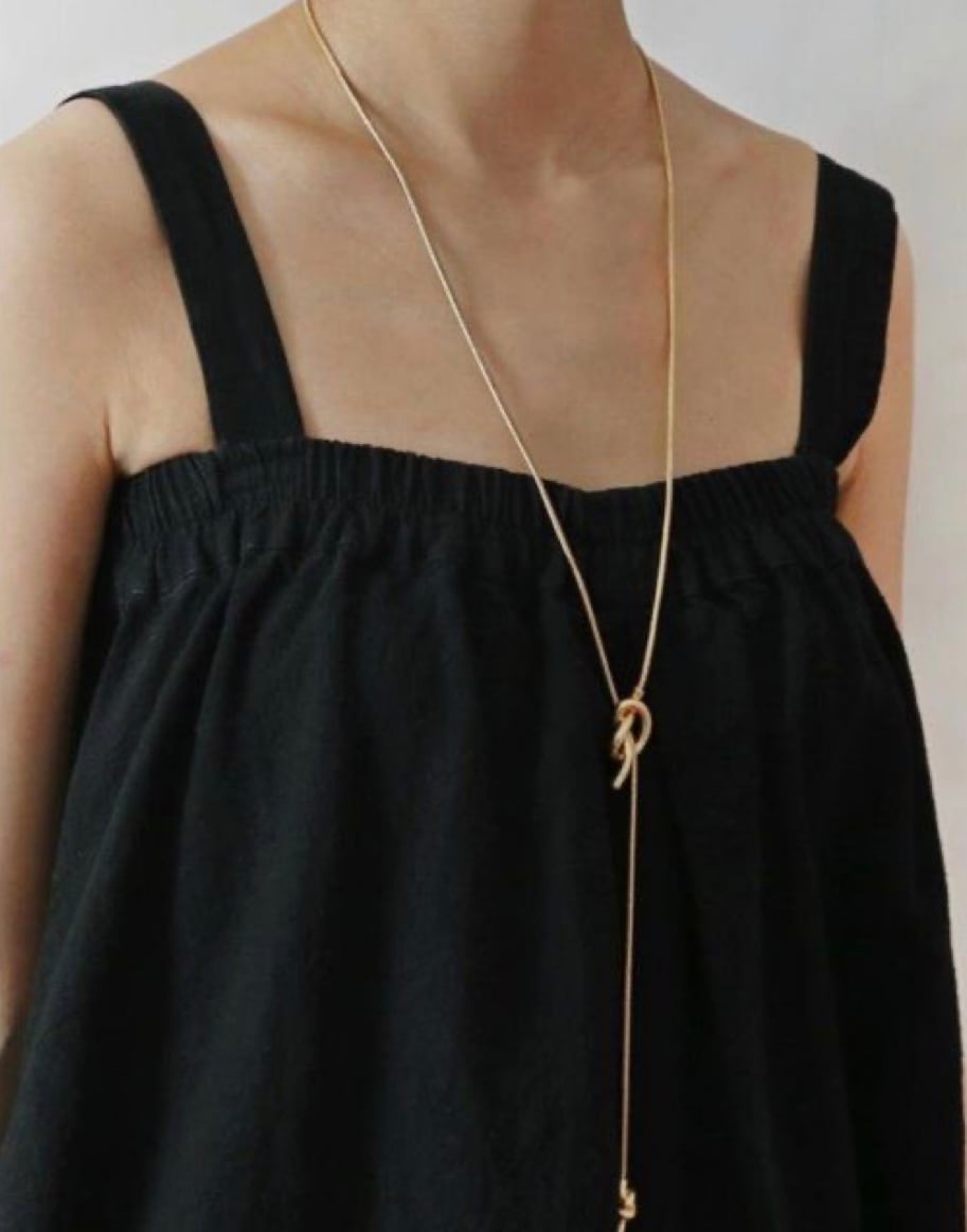 背中の開いたトップスなどに合わせて、バックスタイルにチェーンを垂らすのもおすすめ。