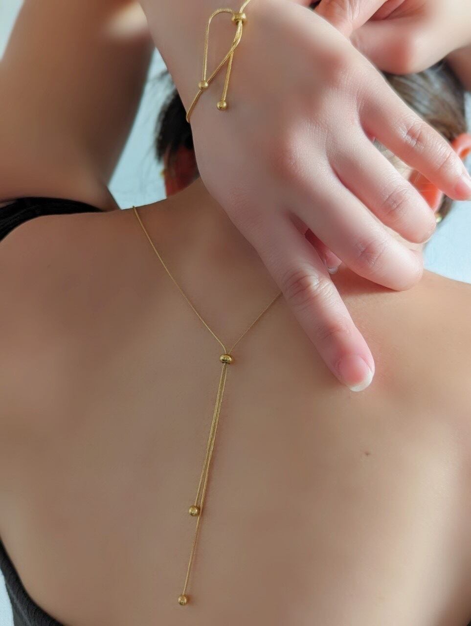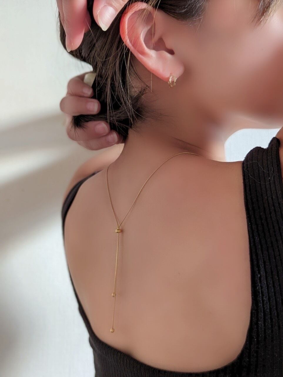 煩わしい留め金具なし!頭からスポっと通すだけのネックレスです。