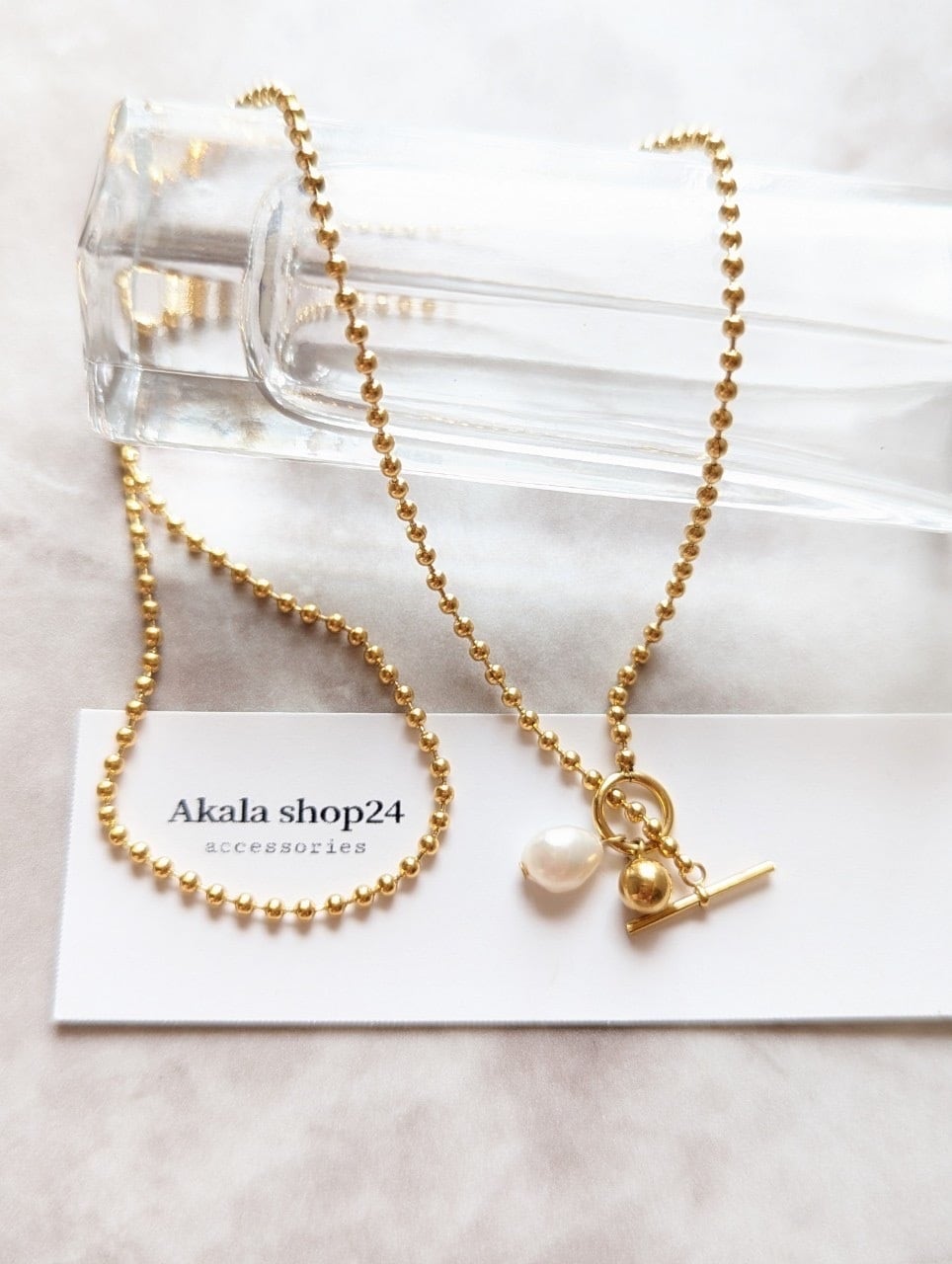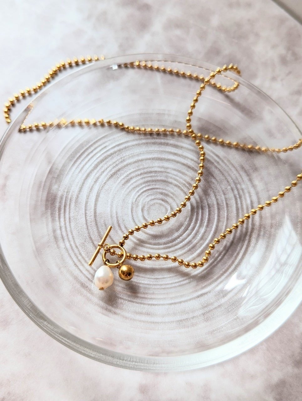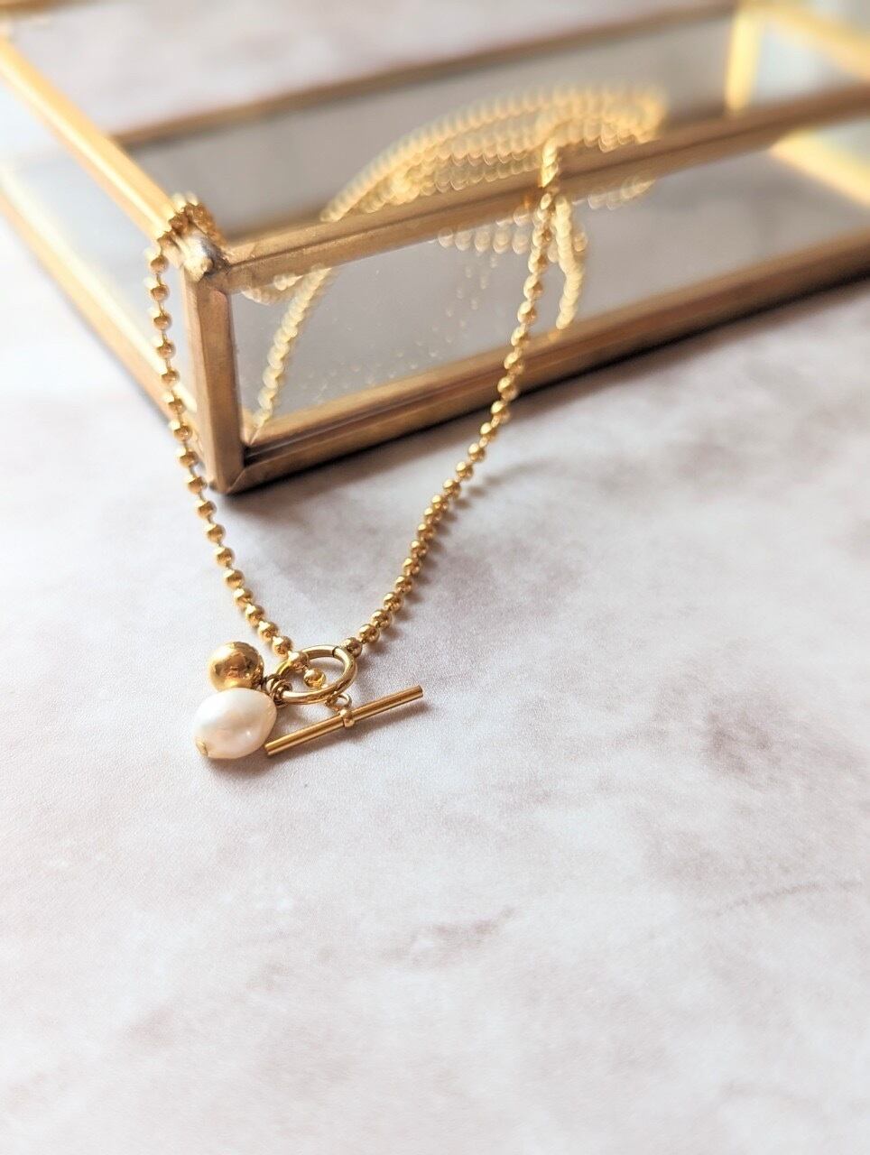 このネックレスは上品なパールとエレガントなチェーンの組み合わせによって、華やかな印象を与えてくれます。さまざまなスタイルに合わせやすく、どんなシーンでも活躍してくれるおしゃれなアイテムです。