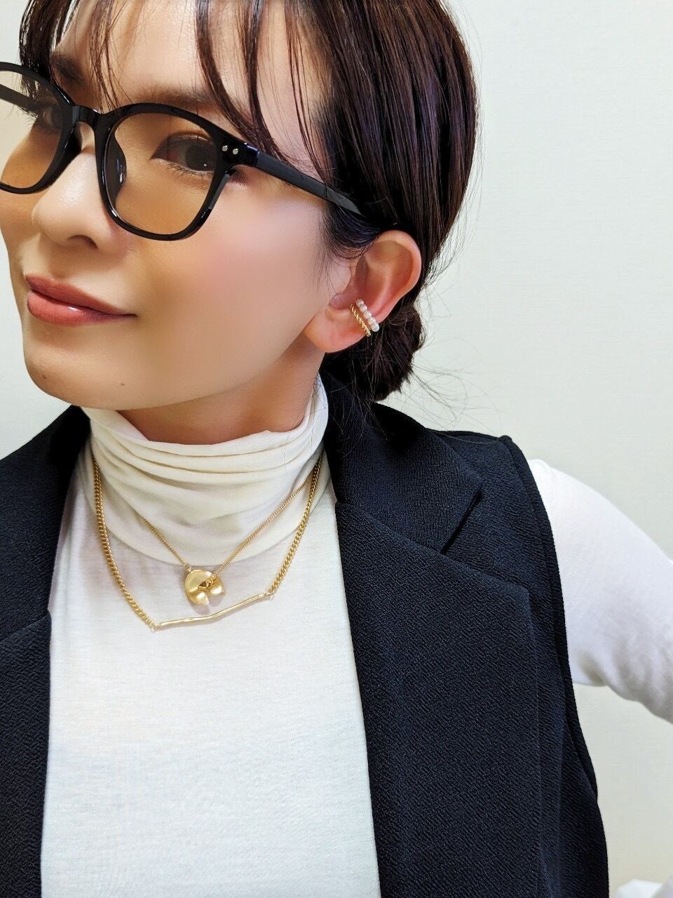 スタッフはsimpleに1つだけつけて存在感をだしています。耳元を彩る存在感あるアイテムです。
